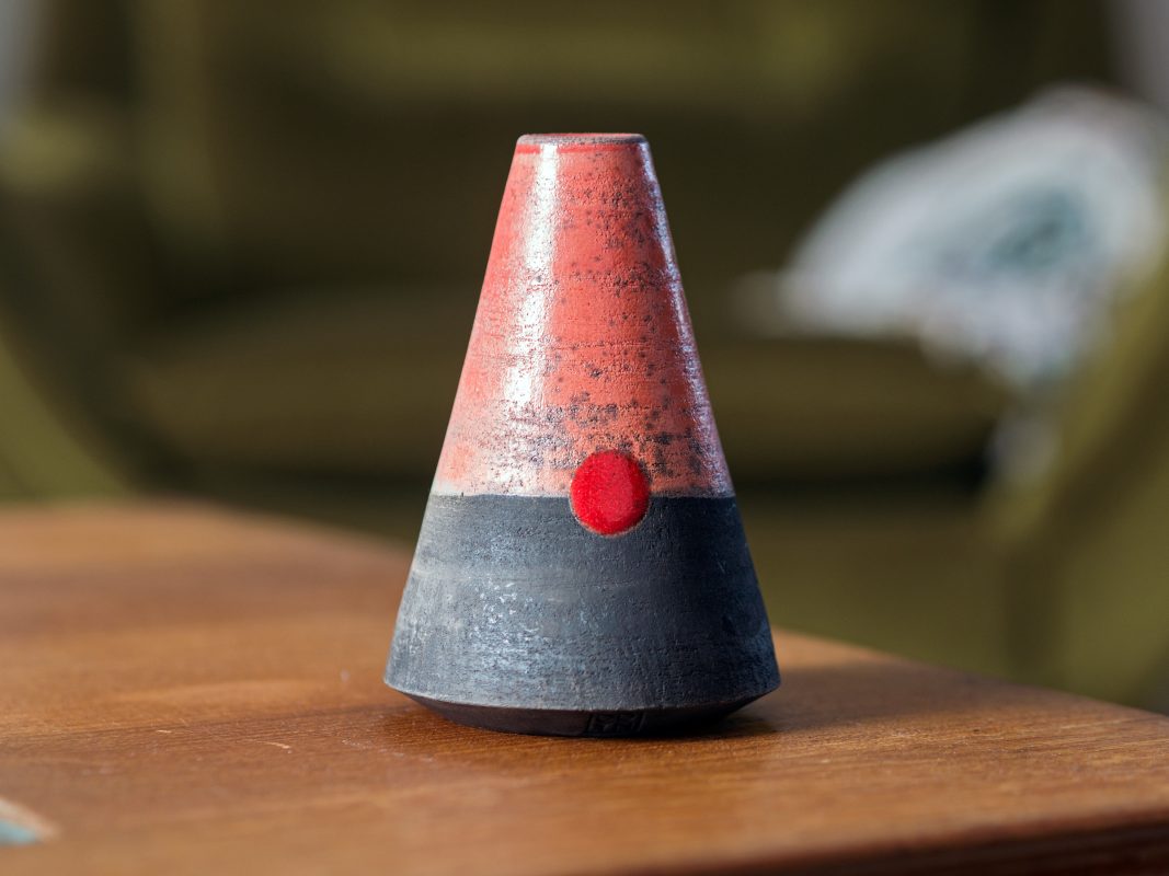 This pot was reduced due to a hairline crack along the clay body which resulted from the shock of the raku process.